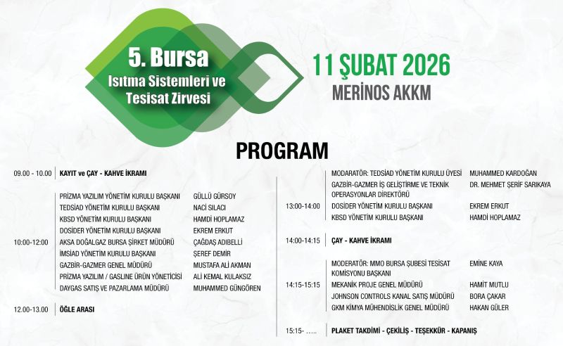 Isıtma ve tesisat sektörünün önemli buluşmalarından biri olan 5. Bursa Isıtma Sistemleri ve Tesisat Zirvesi, ısıtma sektörünün önde gelen kurum ve temsilcilerini 11 Şubat Çarşamba günü Bursa Merinos Atatürk Kongre ve Kültür Merkezi’nde bir araya getirecek.