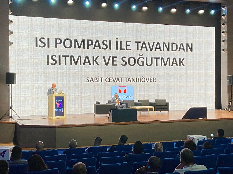 Tanrıöver Mühendislik Kurucu Genel Müdürü Cevat TanrıöverBüyütmek için resme tıklayınTanrıöver Mühendislik Kurucu Genel Müdürü Cevat Tanrıöver, “Konutlarda Tavandan Isıtma ve Soğutma” başlıklı sunumunda yerden ısıtmanın dezavantajlarından söz etti. Isıtma ve soğutmayı tavandan yapmanın avantajlı olacağını söyleyen Tanrıöver, “Isı pompasını boylerli kullanırsak sıcak su ihtiyacını karşılamış olacağız. Klima santrallerinde ise F7 ve F9 filtre yerine elektrostatik filtre kullanılmasının daha iyi olacaktır. Yakın gelecekte tavandan ısıtma, tavandan soğutma yapacağımıza ve bunun için hibrit ısı pompaları kullanacağımıza inanıyorum. ” sözlerini kullandı.