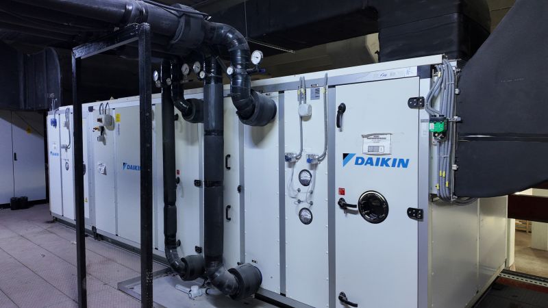 Tesisin tüm iklimlendirme altyapısı, üretim süreçlerinde gerekli olan sıcaklık ve hava kalitesi hassasiyetini en yüksek standartlarda karşılayacak şekilde tasarlandı. Daikin’in ısı geri kazanımlı klima santralleri enerji verimliliği sağlarken, hava soğutmalı invertörlü vidalı soğutma grupları fabrikanın yüksek kapasite gereksinimlerini güvenle karşılıyor.